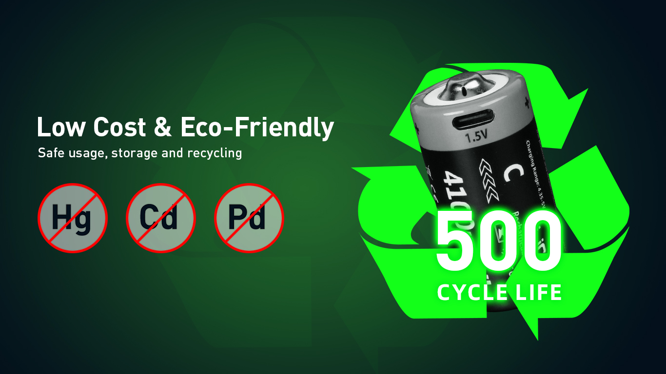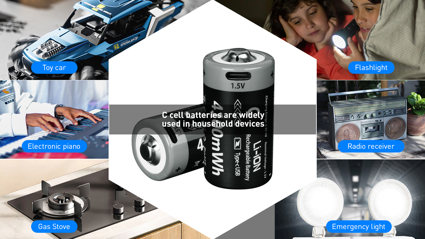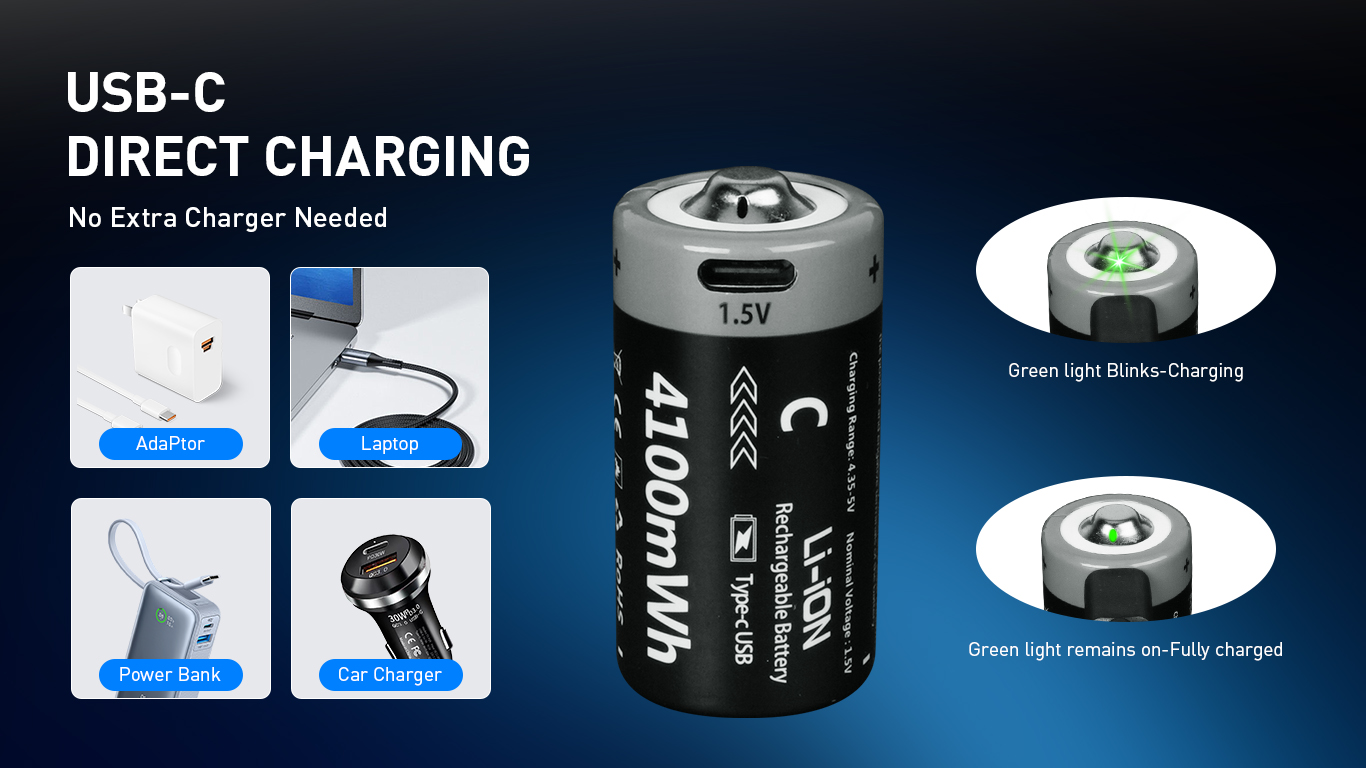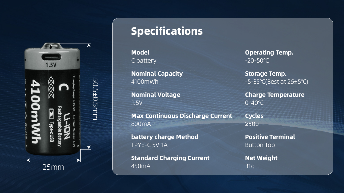 C Size Lithium 4100mWh Rechargeable Battery(4-Pack)