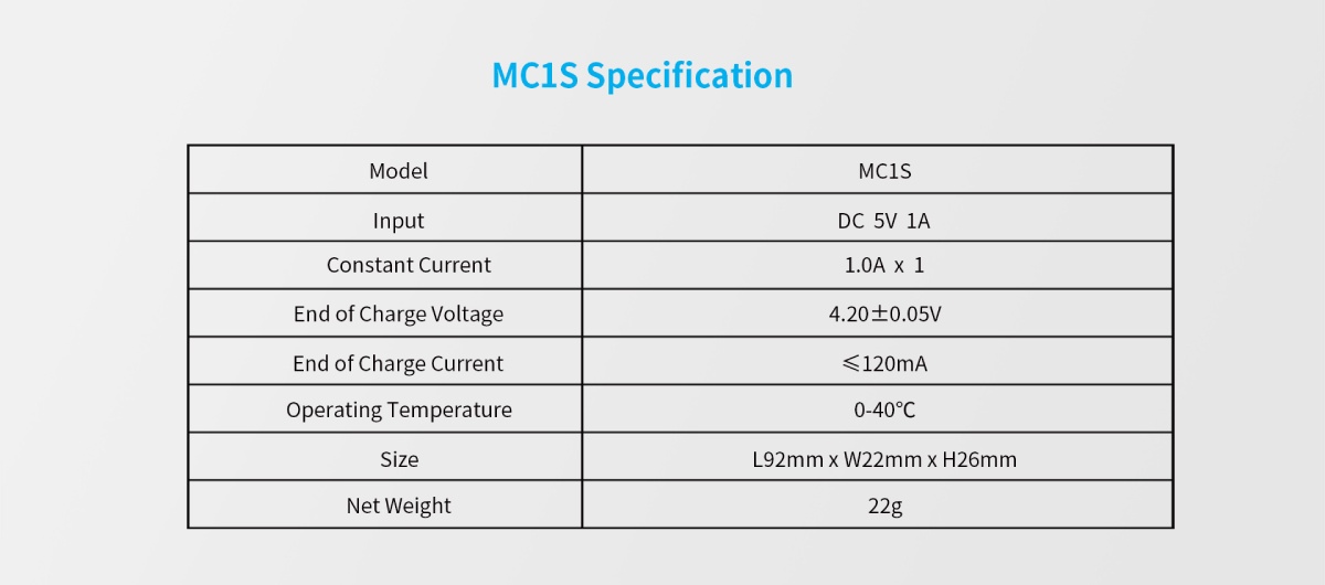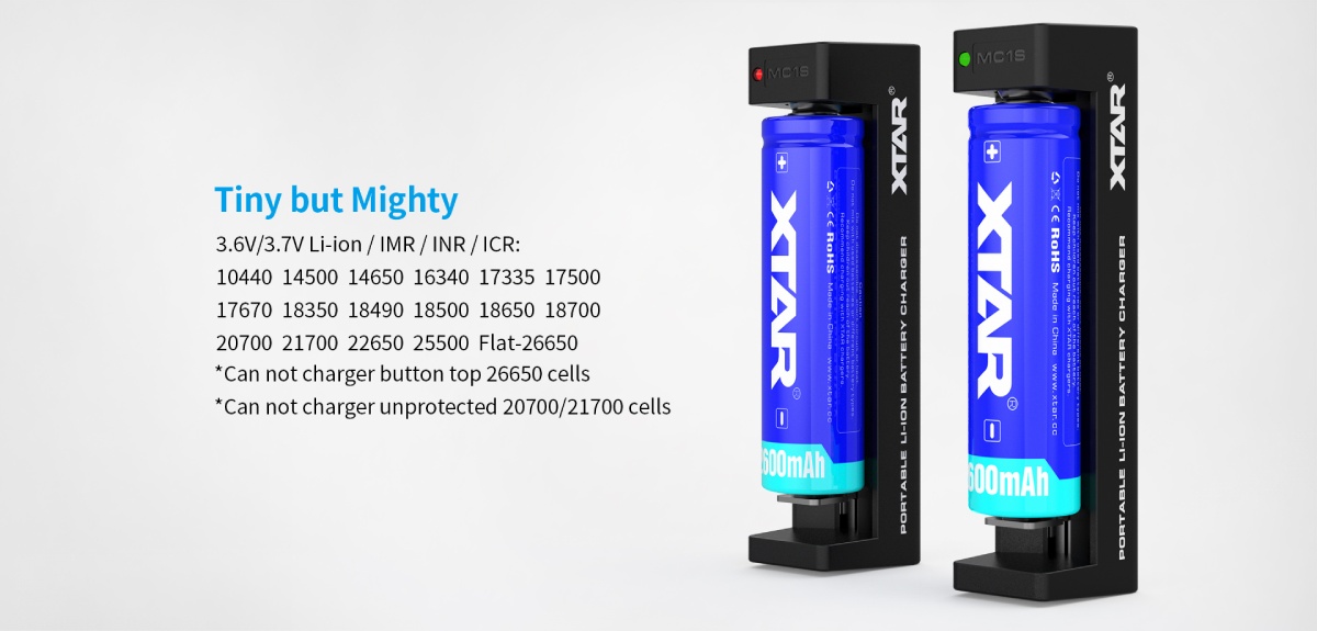 XTAR MC1S Portable Single Bay 1A 18650 Li-ion Battery Charger