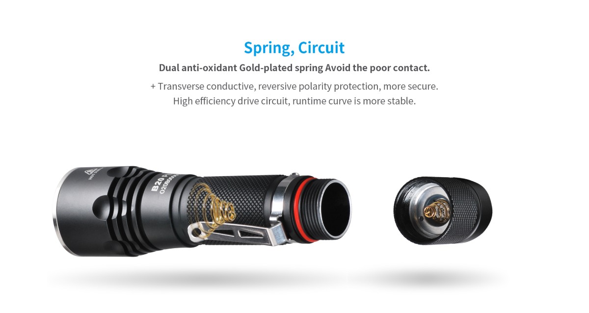 • Low heat, excellent heat dissipation design, extend flashlight lifespan.