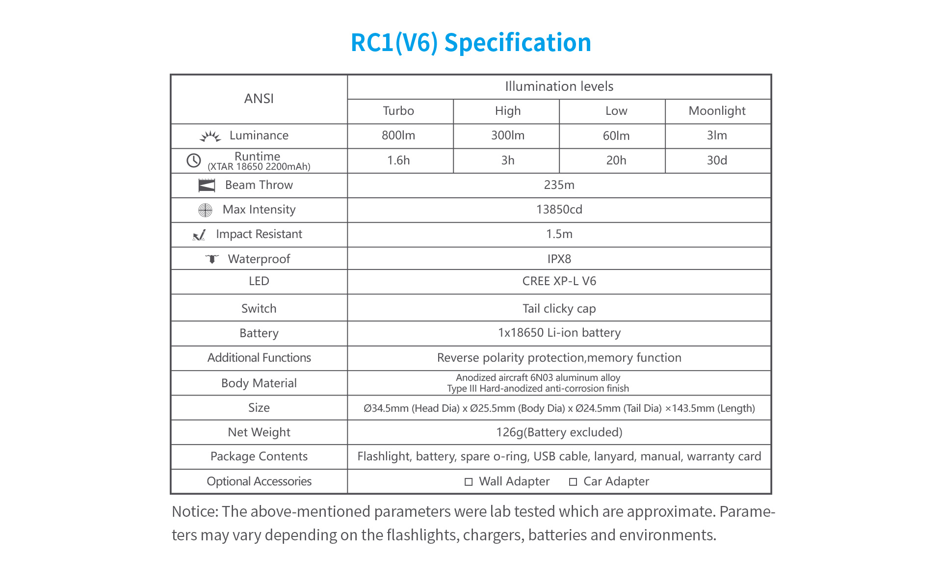 XTAR RC1 Rechargeable Flashlight (RC1 SET)