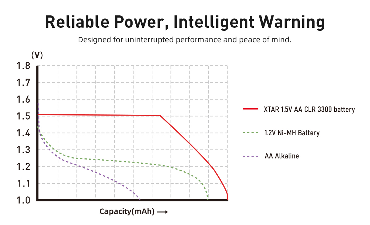 2. Stable 1.5V with Alkaline-like Discharge