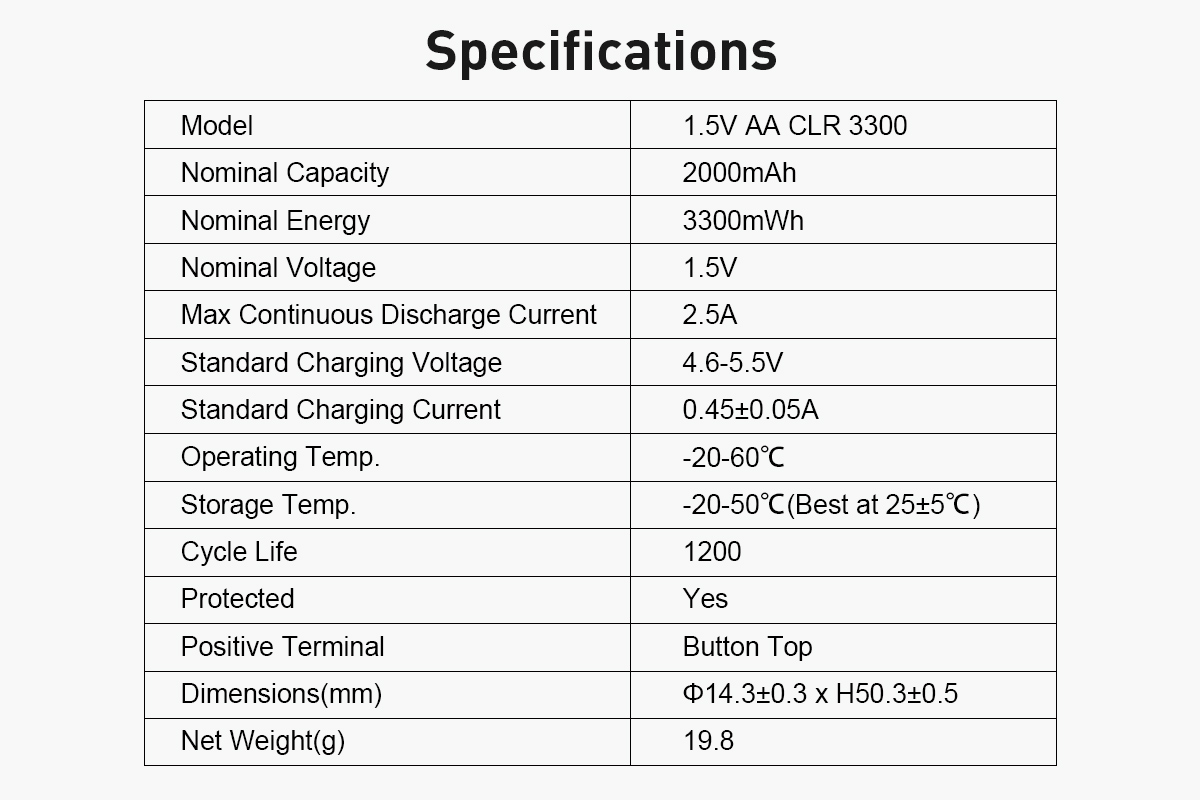 XTAR 1.5V AA CLR 3300 Rechargeable Li-ion battery