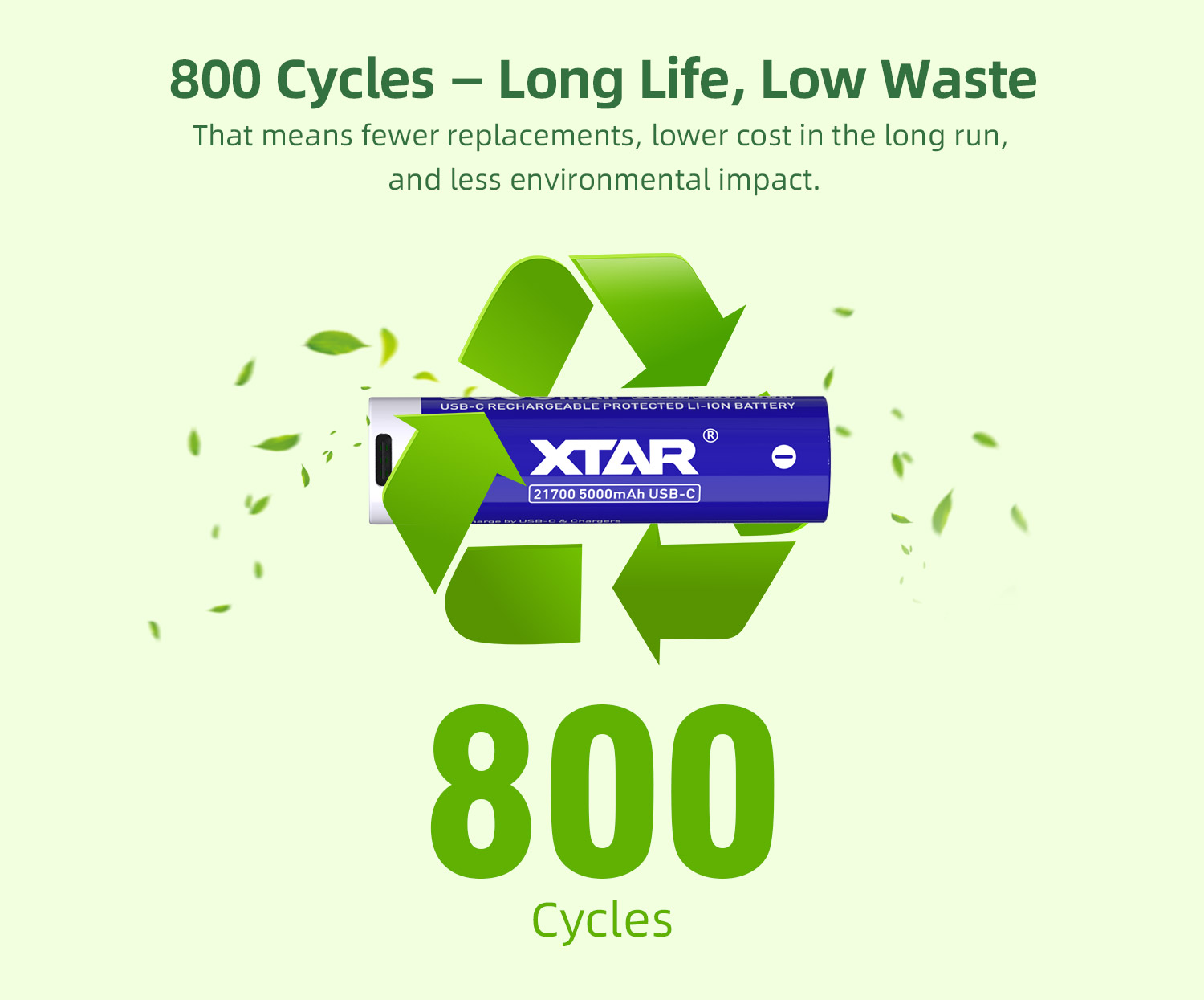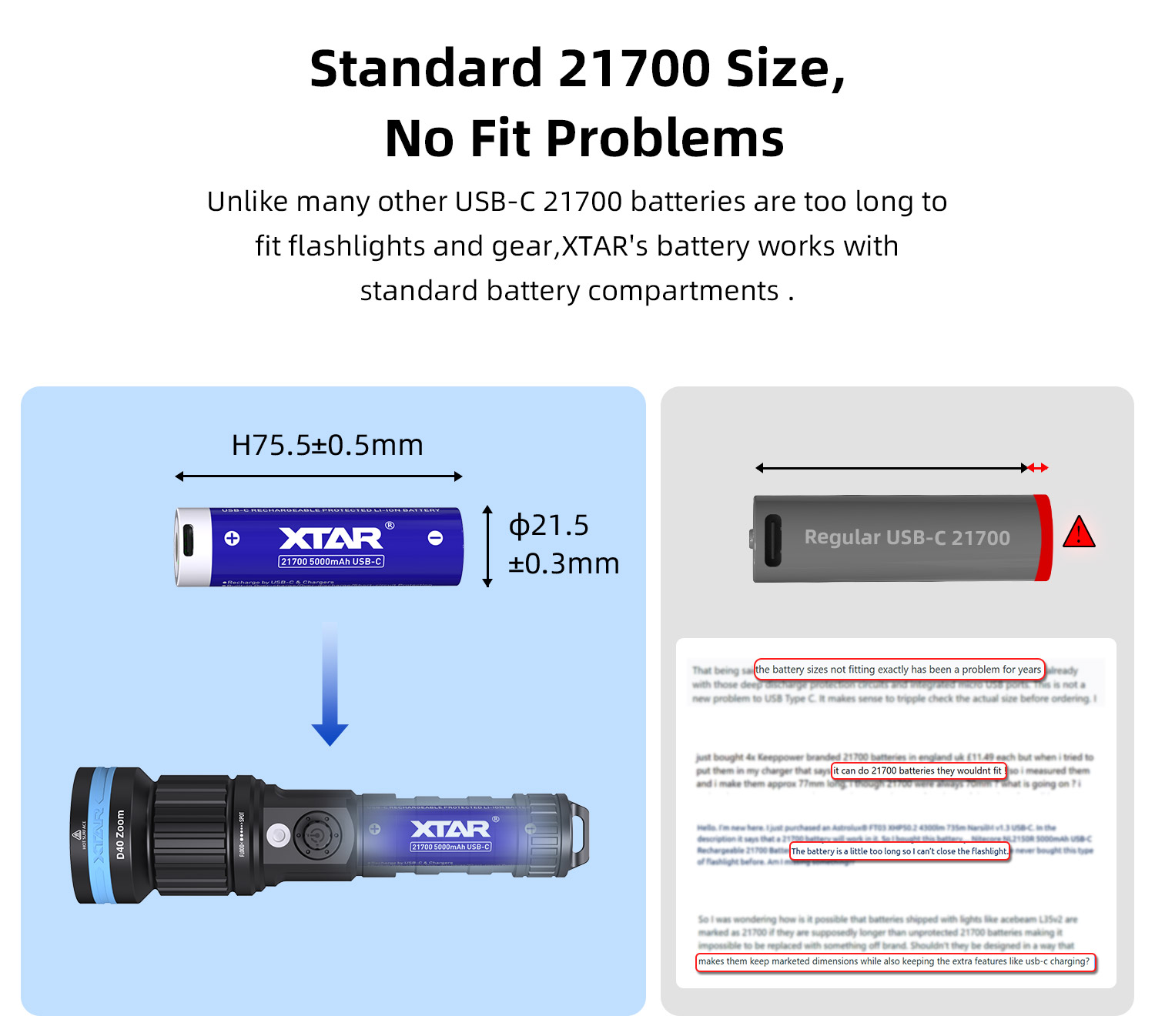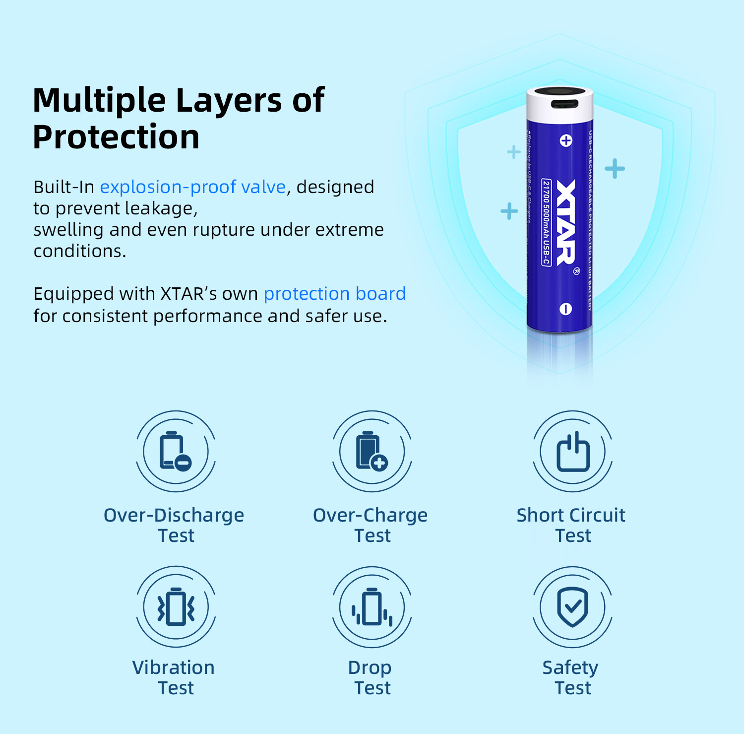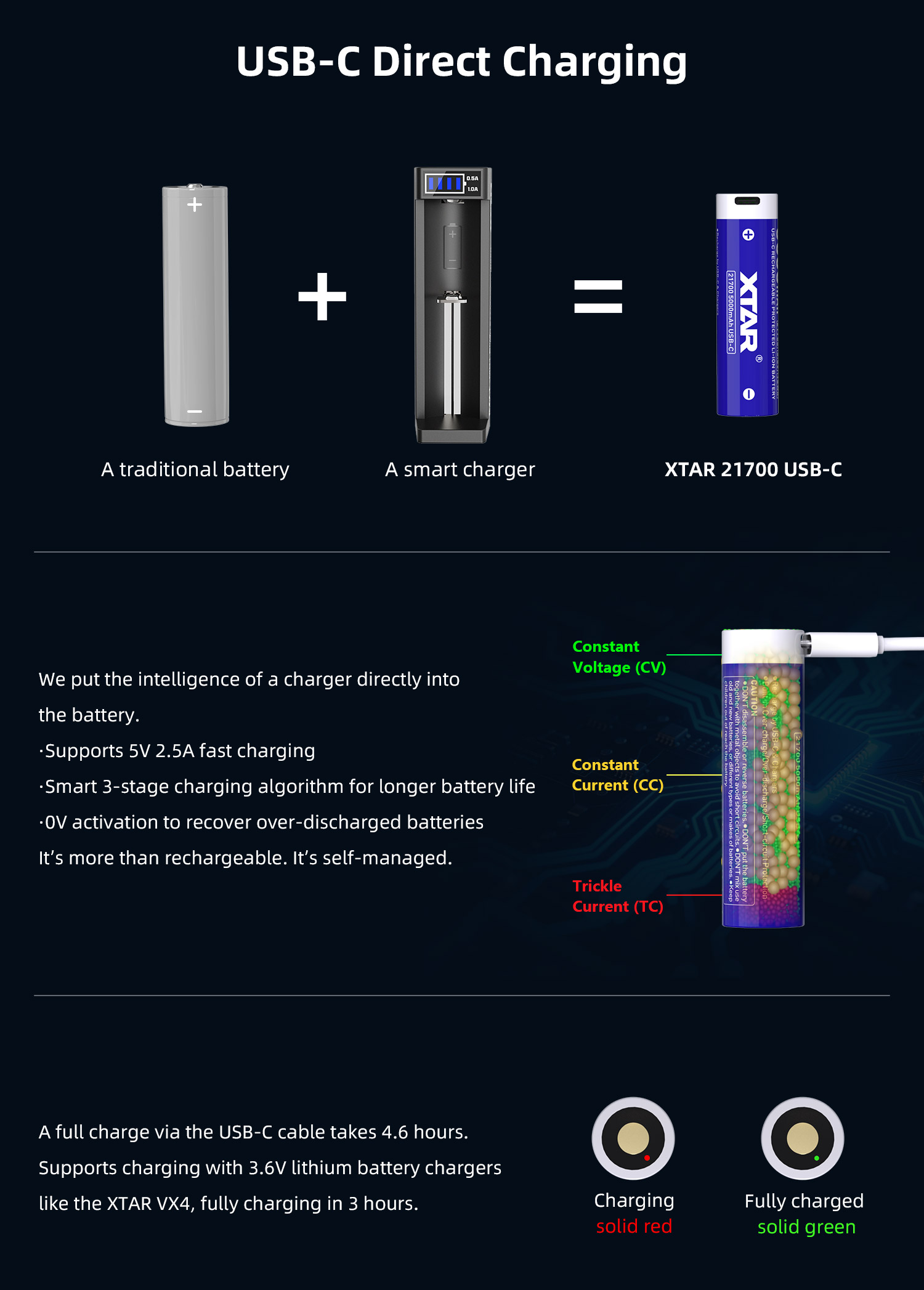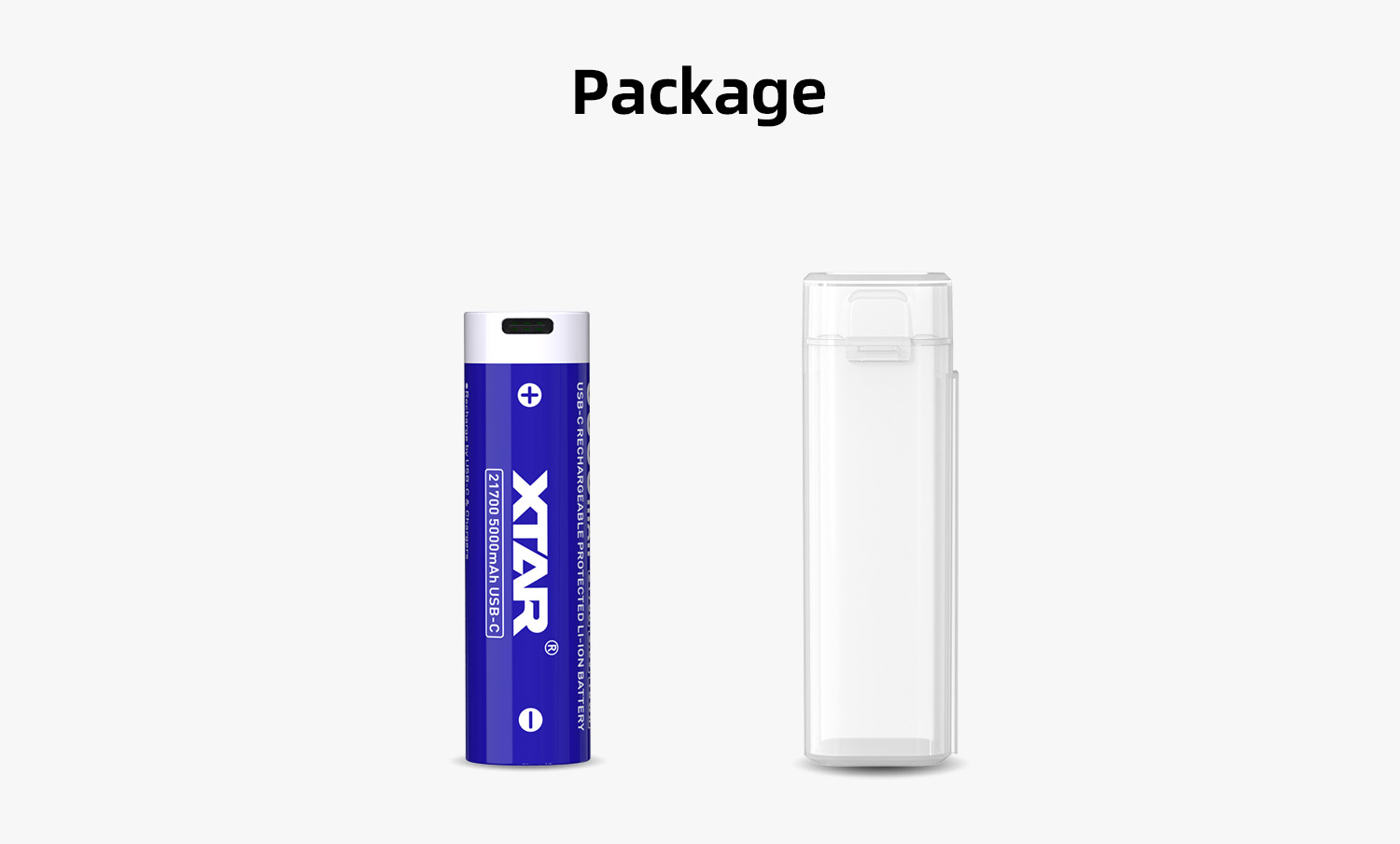 XTAR 21700 5000mAh USB-C 10A Li-ion Rechargeable Li-ion Battery