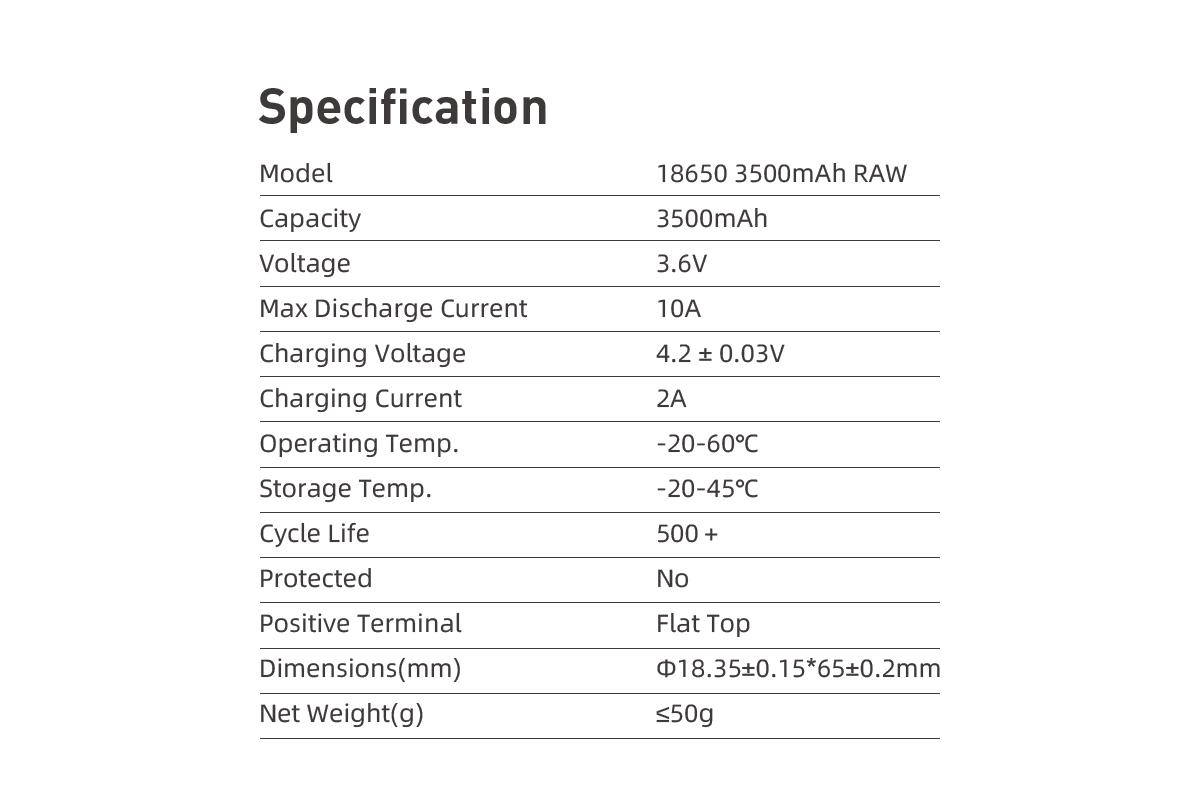 XTAR 3.6V 18650 3500mAh Raw 10A Li-ion Battery Cell