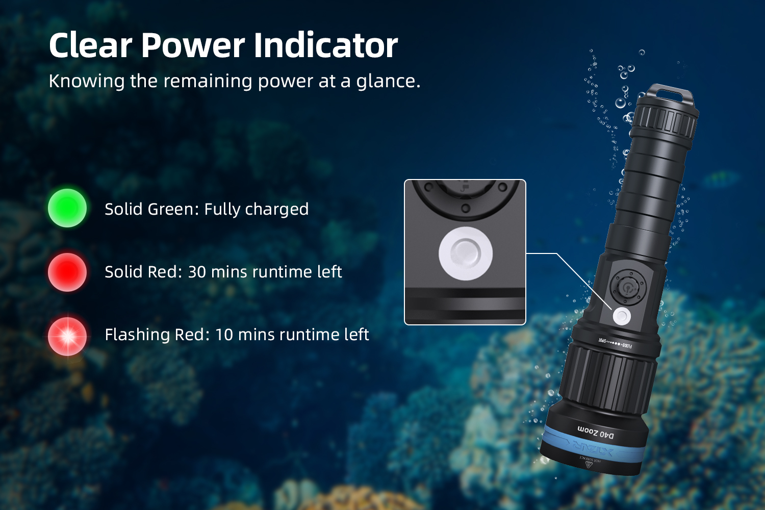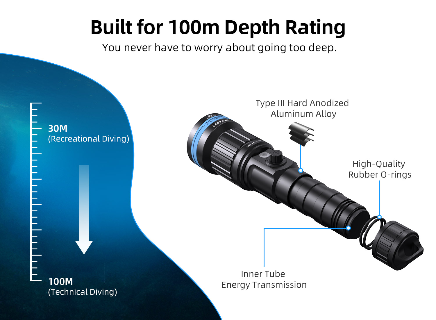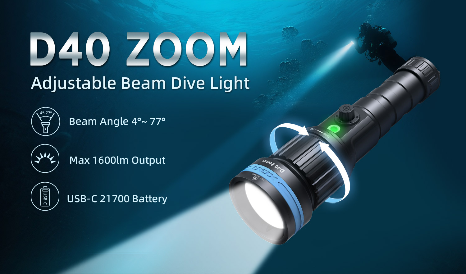 XTAR D40 ZOOM 1600 lumens Adjustable Beam Dive Light