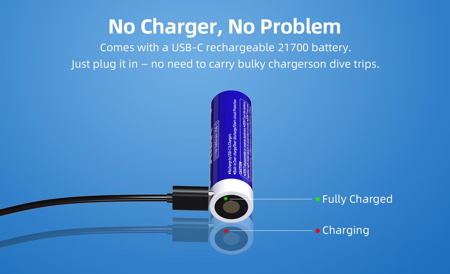 High-capacity 21700 battery supports USB-C direct charging (no external charger needed), perfect for liveaboards/extended trips.