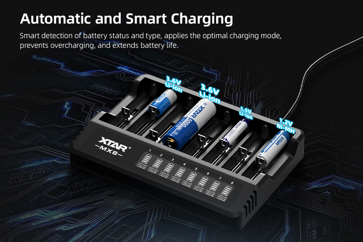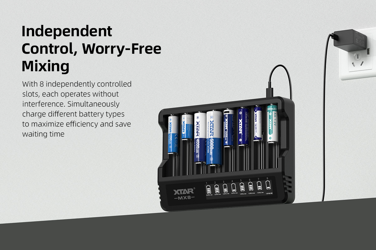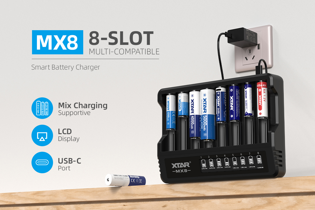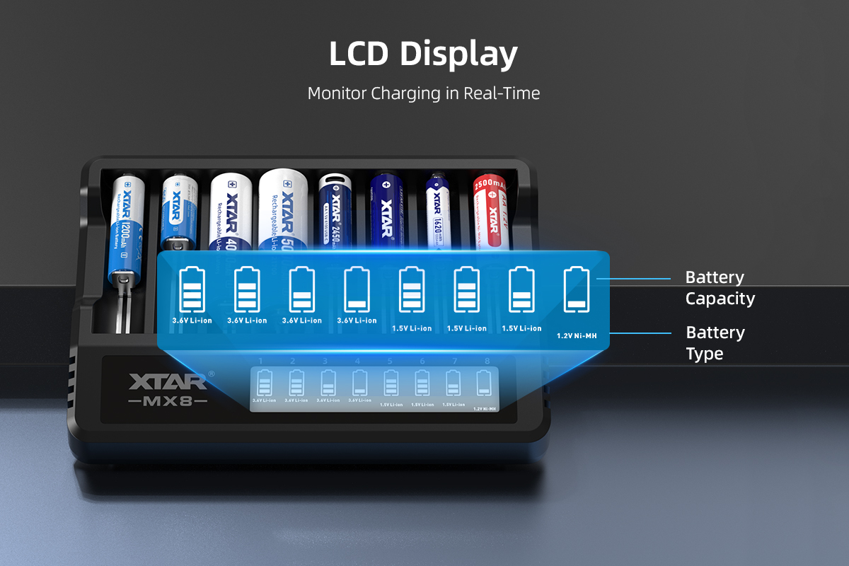 XTAR MX8 Charger (Compatible with 3.6/3.7V & 1.5V Li-ion and 1.2V Ni-MH Batteries)