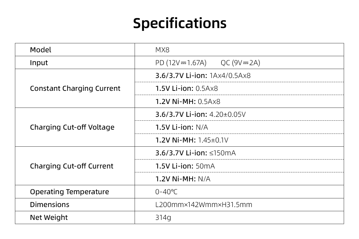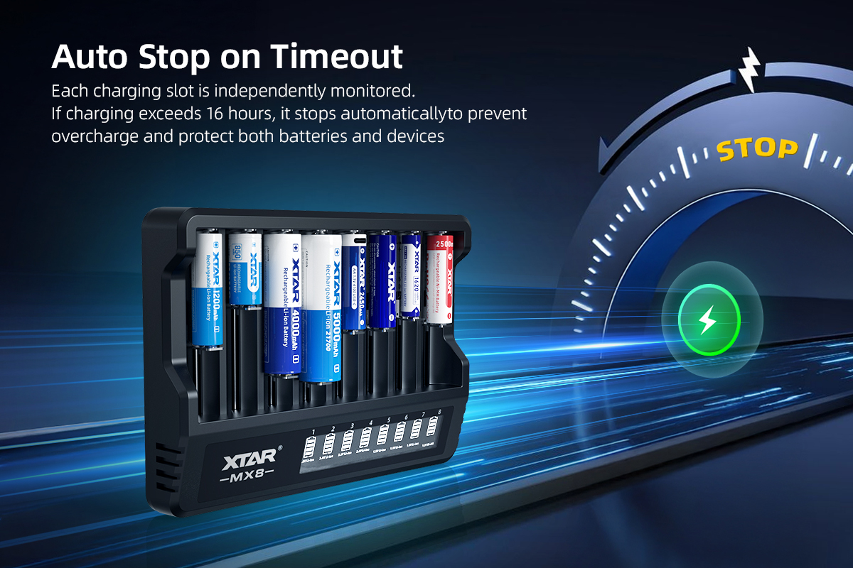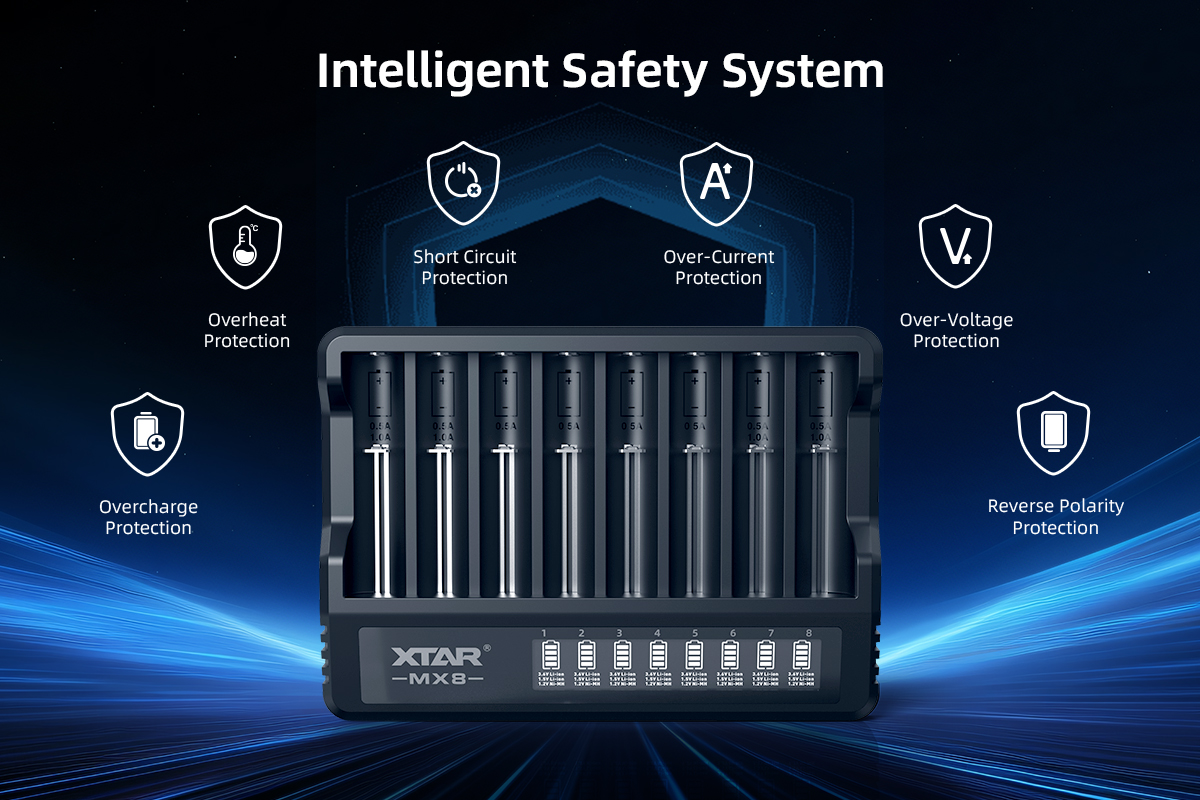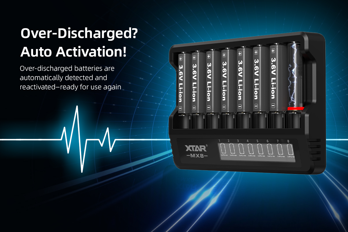 XTAR MX8 Charger (Compatible with 3.6/3.7V & 1.5V Li-ion and 1.2V Ni-MH Batteries)