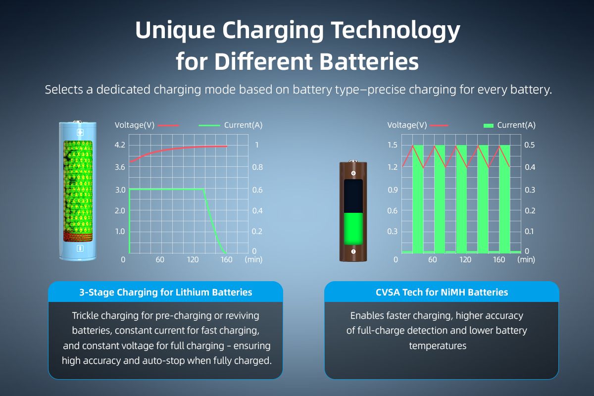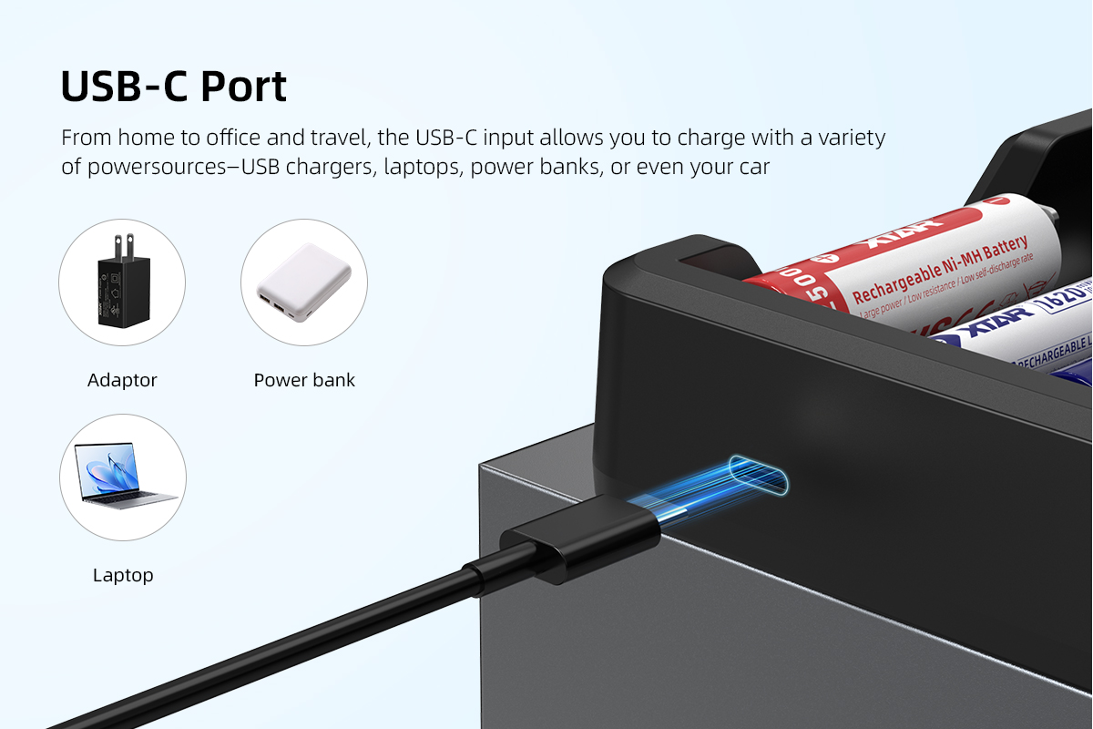 - Multi-Compatibility: Supports various battery types, brands, sizes, and mixed charging.