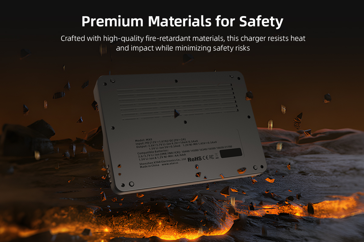 - Multi-Layer Safety Protection: Includes overcharge, overvoltage, overcurrent, overtemperature protection, short-circuit protection, and reverse polarity protection. Constructed with premium fire-retardant materials for high-temperature resistance and impact durability, ensuring worry-free use.