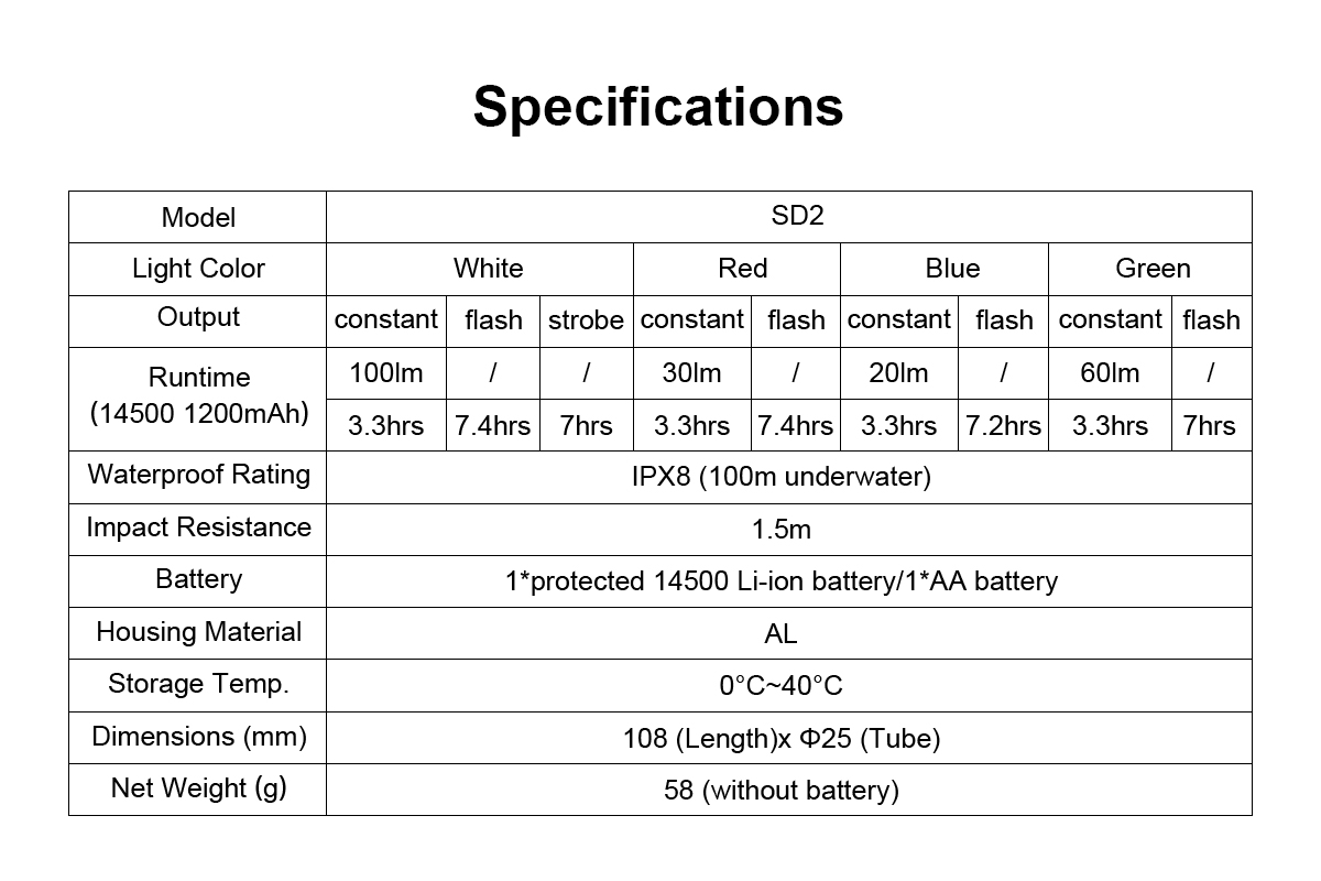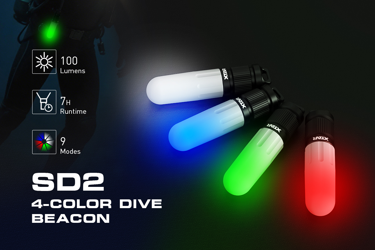 XTAR SD2 4-colour Mini Dive Beacon for underwater 100m diving and outdoor lighting
