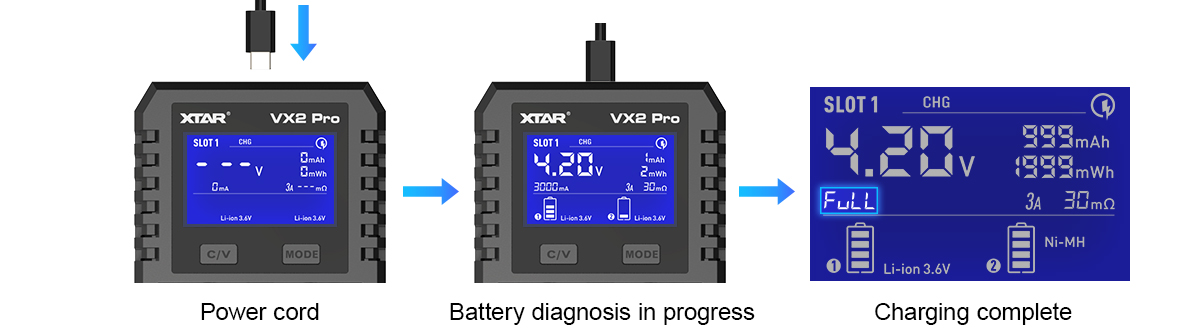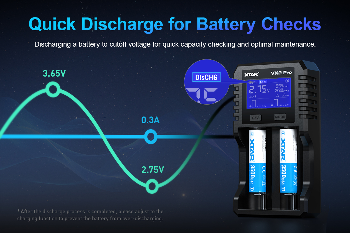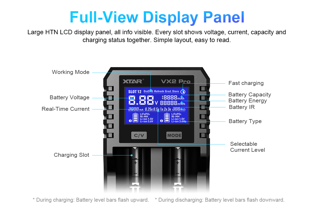 XTAR VX2 Pro Visible Mixer 1.5V/3.6V/3.7V Li-Ion& 3.2V LiFePO4& 1.2V Ni-MH Batteries Charger and Battery Capacity Tester
